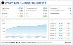 Dream Star | Онлайн кинотеатр - канал в телеграме, созданный по принципу онлайн кинотеатра. Проект имеет различные виды монетизации, проработанные источники трафика, огромный потенциал для развития . Оборот канала около 140-200к. в месяц. Плюсы проекта:
