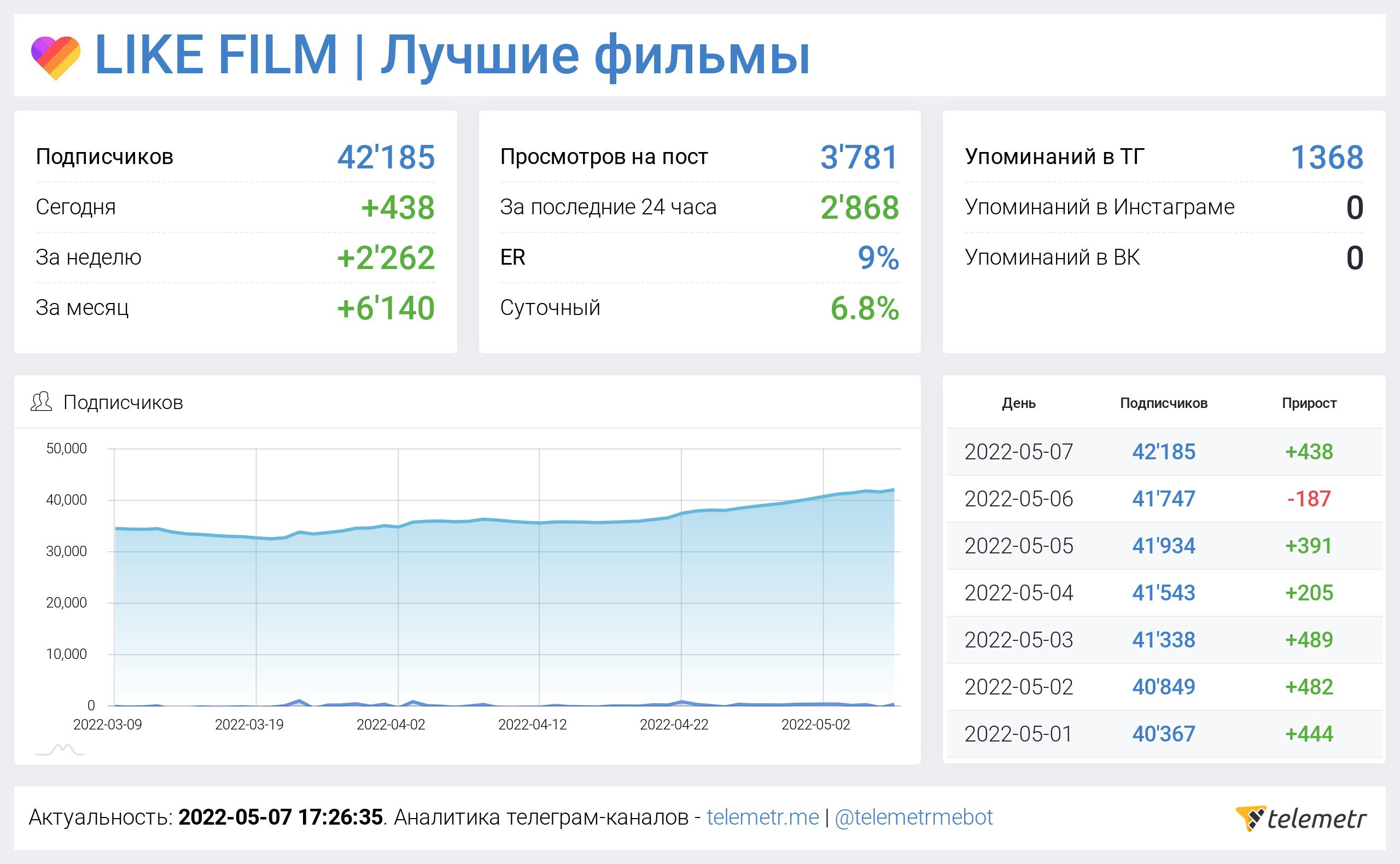 Телеграм канал с аудиторией более 40000 человек в тематике «Фильмы»