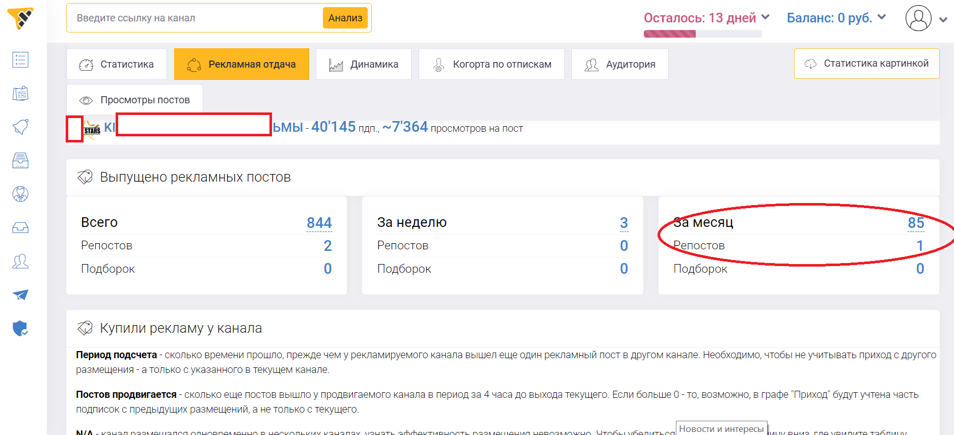 Статистику рекламных постов можно посмотреть в Телеметре.