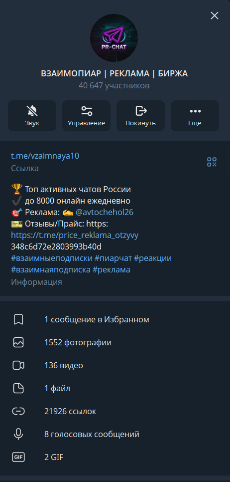 В чате активно продается реклама через бота обязательной подписки.