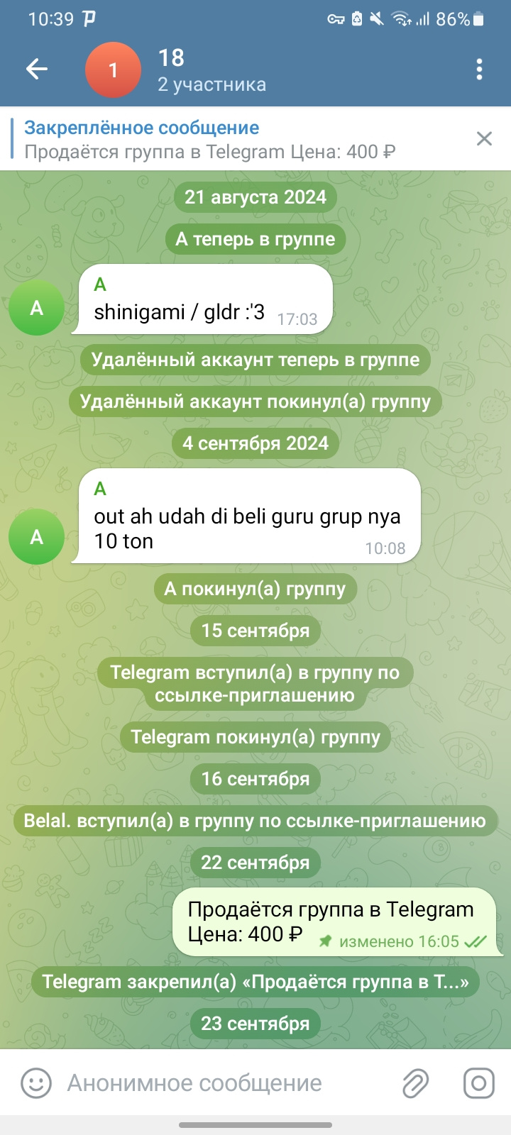 История активности группы показывает, что она была создана 20 сентября 2023 года. Это видно всем. Однако в сообщениях группы указана дата 21 августа 2024 года.