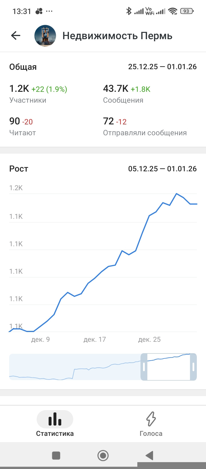 Активная аудитория: Более 1200 реальных подписчиков, заинтересованных в покупке, продаже и аренде недвижимости в Перми и Пермском крае.