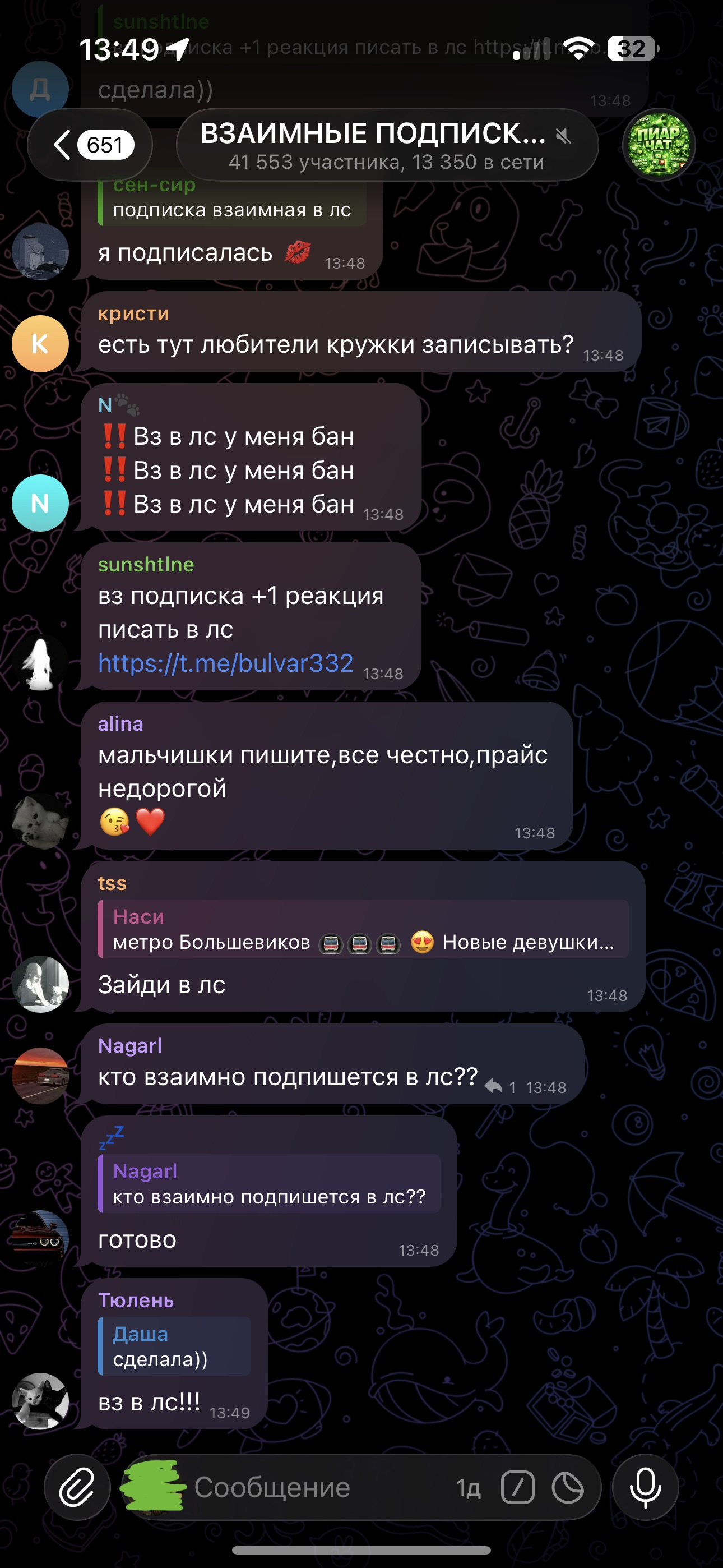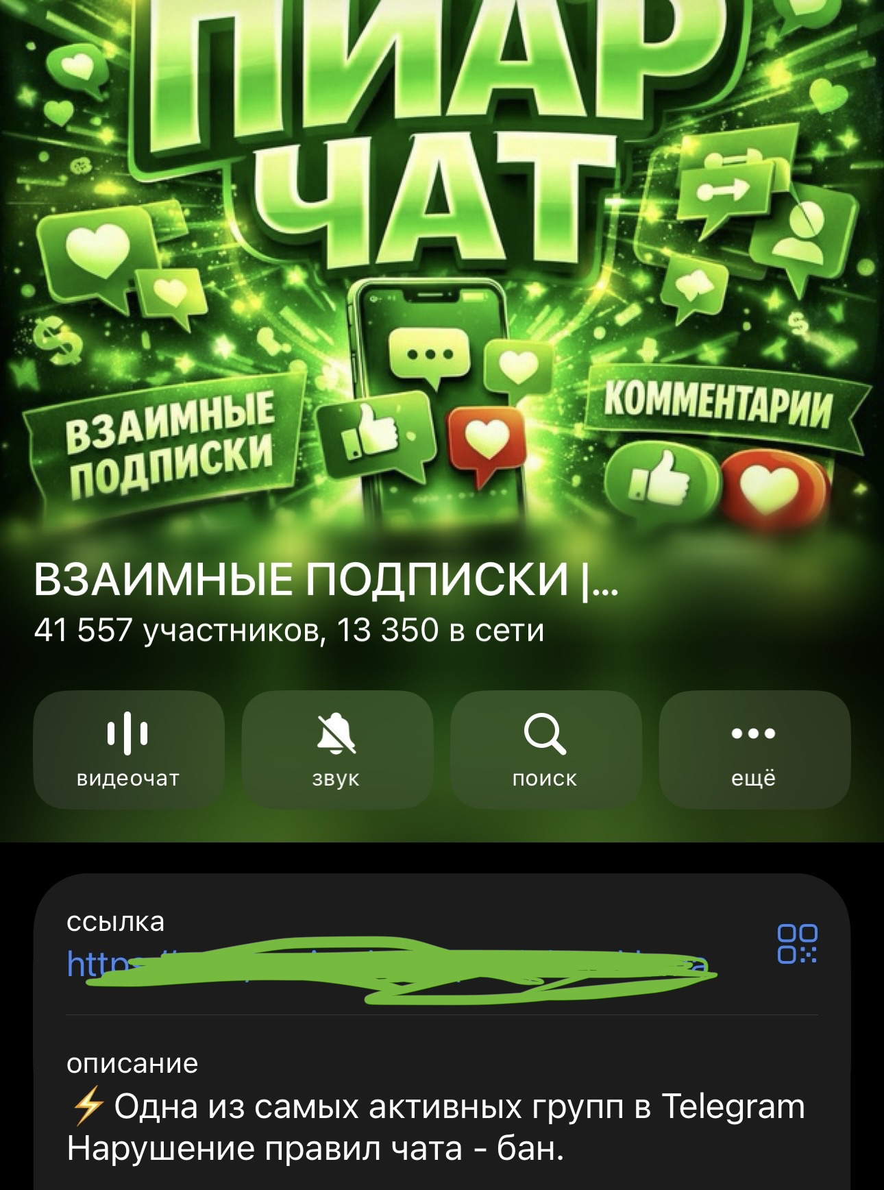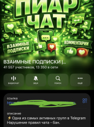 ????Продаю полностью активный чат взаимных подписок в Telegram! Или же полную сеть из 4 чатов.