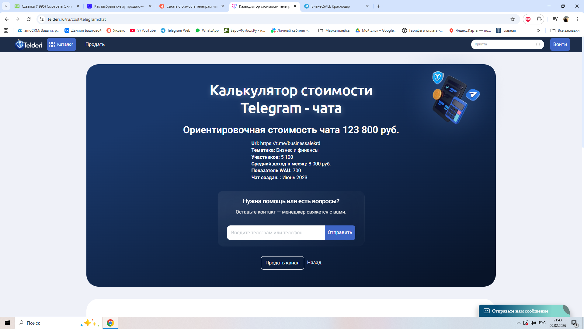 Тематика чата: бизнес и финансы. Он посвящён продаже готовых бизнесов.