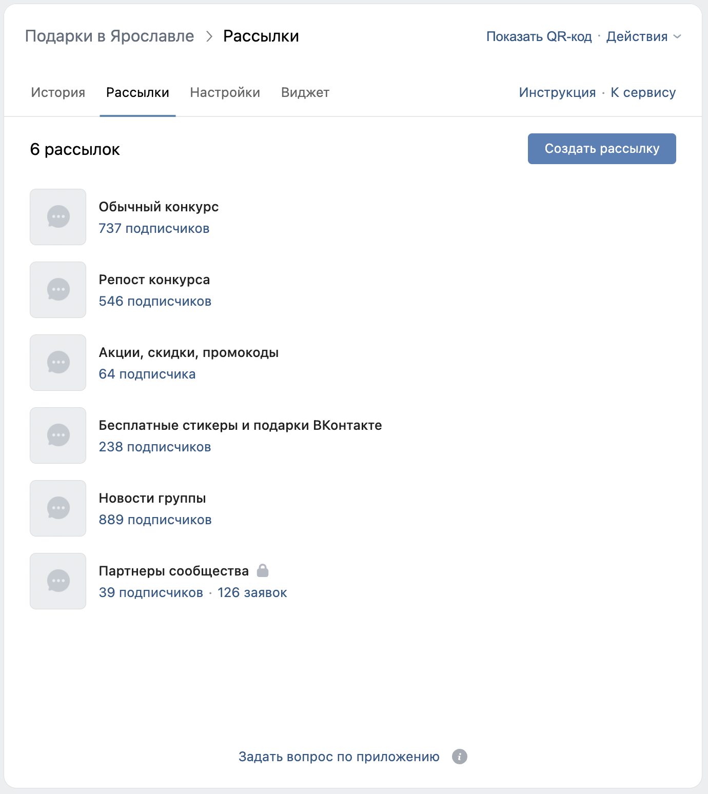 В группе установлено приложение Рассылки, на которые подписаны около 800 пользователей (см. скриншот).
