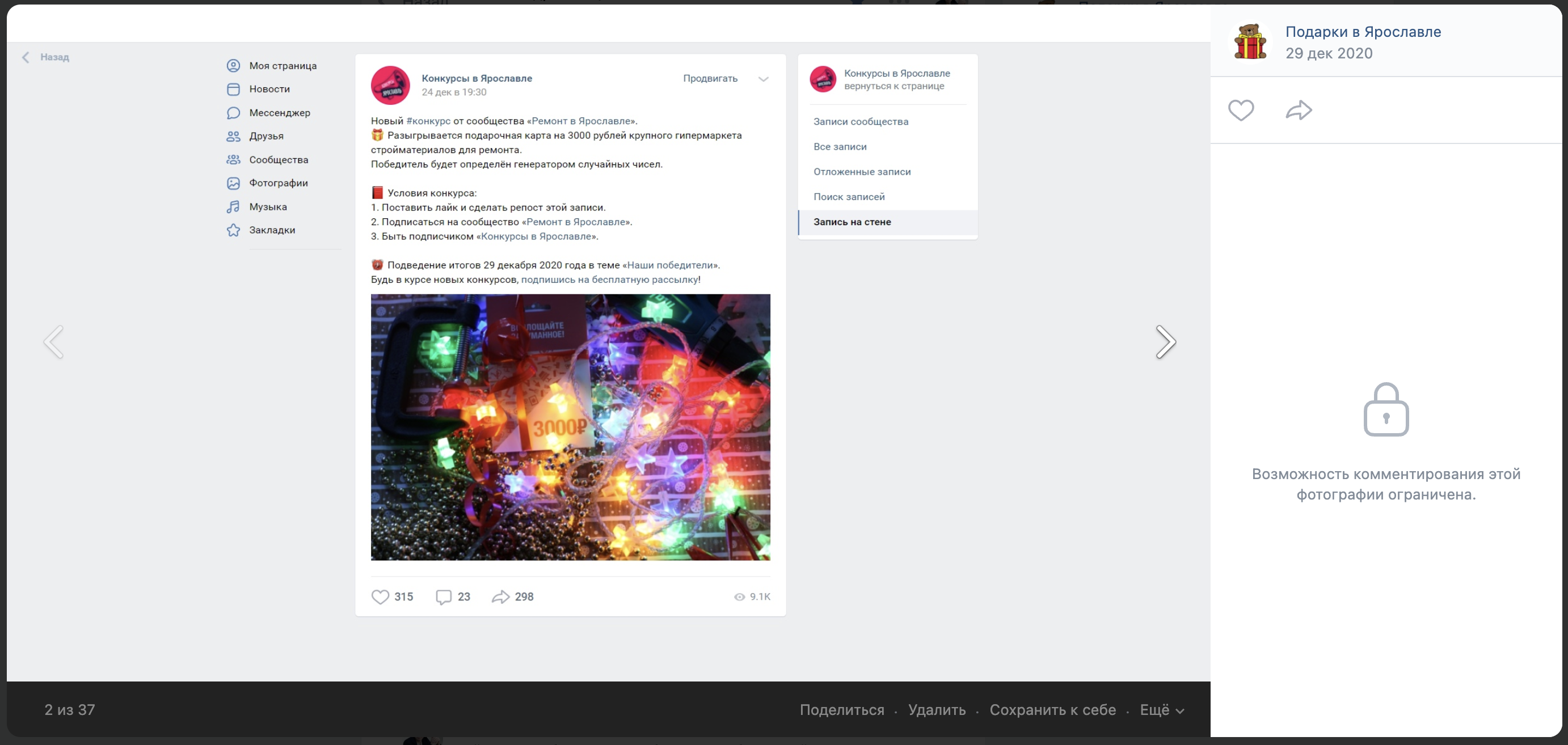 Ранее группа проводила конкурсы, помогала подобрать оригинальный подарок, рассказывала о самых выгодных акциях и скидках в магазинах города Ярославль, делилась персональными промокодами и экономила деньги подписчиков. После вступления в силу законов о рекламе было лень разбираться и группа перестала функционировать.