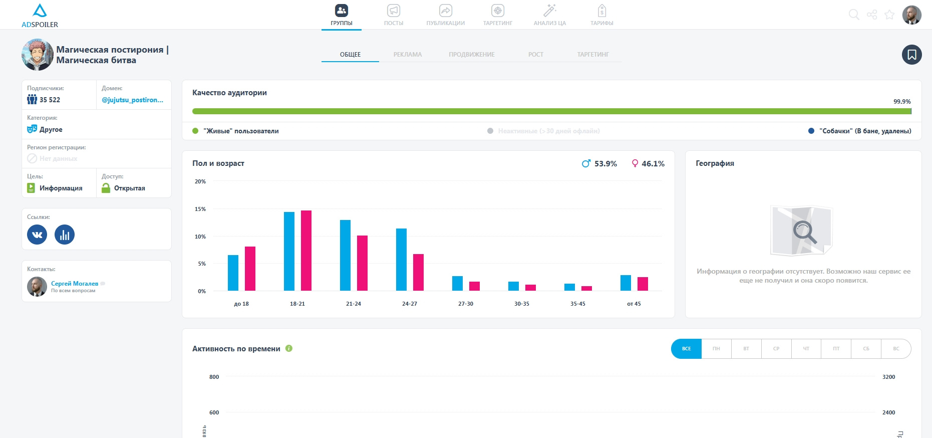 Целевая аудитория — поклонники аниме, особенно подростки и молодые взрослые 16–25 лет, любители мемов, артов и фан-контента по «Jujutsu Kaisen», которые активно комментируют и репостят материалы, подобно посетителям крупных аниме-пабликов. Группа привлекательна для покупателей стабильным потоком качественного эксклюзивного контента, лояльной фан-базой, готовой к росту, и потенциалом монетизации через рекламу или мерч, ведь тематика аниме сейчас на пике популярности, а посты вроде фактов и артов легко набирают вовлеченность. Это готовый проект с проверенной нишей, где каждый пост усиливает сообщество без лишних усилий.