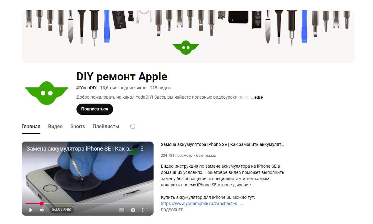 Уникальный контент. Всё ролики записаны самостоятельно владельцем канала и мастером по ремонту техники Apple по совместительству.