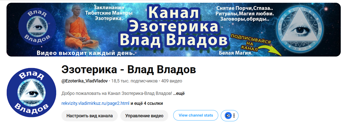 Канал "Эзотерика - Влад Владов" посвящён глубокому изучению и практическому применению эзотерических знаний, в том числе старинных и авторских ритуалов на самые разные случаи жизни — снятие порчи, колдовства, проклятий, избавление от черной магии, а также магия любви, включая привороты, отвороты, снятие венца безбрачия и другие обряды для семейного благополучия. Кроме того, на канале представлены тибетские мантры и заклинания, которые, по заявлению автора, работают мгновенно, а также ритуалы и молитвы для привлечения денег и защиты от сглаза и порчи. Специфика канала заключается в сочетании уникальных авторских и древних практик, что делает его особенным среди эзотерических ресурсов в интернете. Основная аудитория канала — это люди, интересующиеся эзотерикой, магией, духовным развитием, кто ищет практические и проверенные способы решения личных и жизненных проблем с помощью энергий и заклинаний. Также канал может быть интересен тем, кто ценит аутентичность и глубину традиций, а также специалистам и начинающим практикам в сфере магии и духовных практик. Для потенциального покупателя данный проект представляет собой готовую платформу с уникальным контентом и устойчивой аудиторией, регулярно получающей новые видео, что обеспечивает стабильный интерес и возможности для дальнейшего роста и монетизации. Канал работает в нише, которая сохраняет свою популярность несмотря на колебания в трендах социальных медиа, а наличие эксклюзивных ритуалов и ежедневных публикаций формирует доверие и лояльность зрителей. На канале есть монетизация. Если у вас есть вопросы или вы хотите обсудить детали проекта, пишите — я с радостью отвечу и помогу получить всю необходимую информацию.