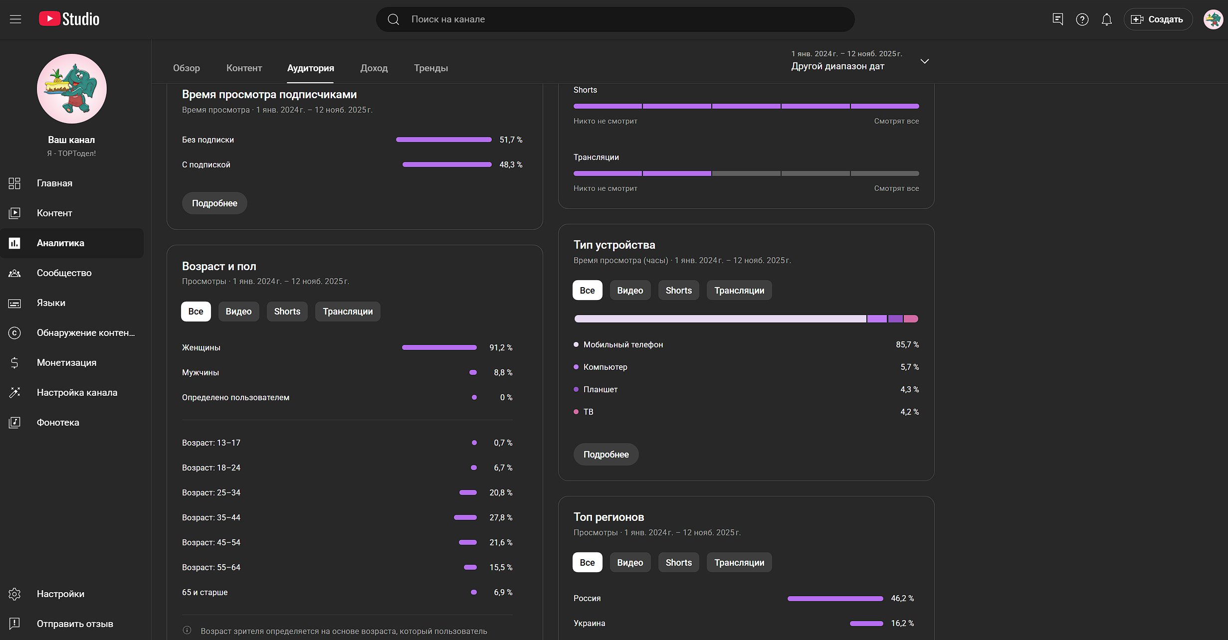 Целевая аудитория — это любители домашней выпечки, люди, стремящиеся освоить искусство кондитерского оформления, а также те, кто работает или планирует работать на заказ. Канал привлек внимание более миллиона подписчиков и собрал около 155 миллионов просмотров, что говорит о его популярности и доверии аудитории. Такой масштаб и продолжительность ведения проекта создают прочную базу для дальнейшего развития и монетизации.