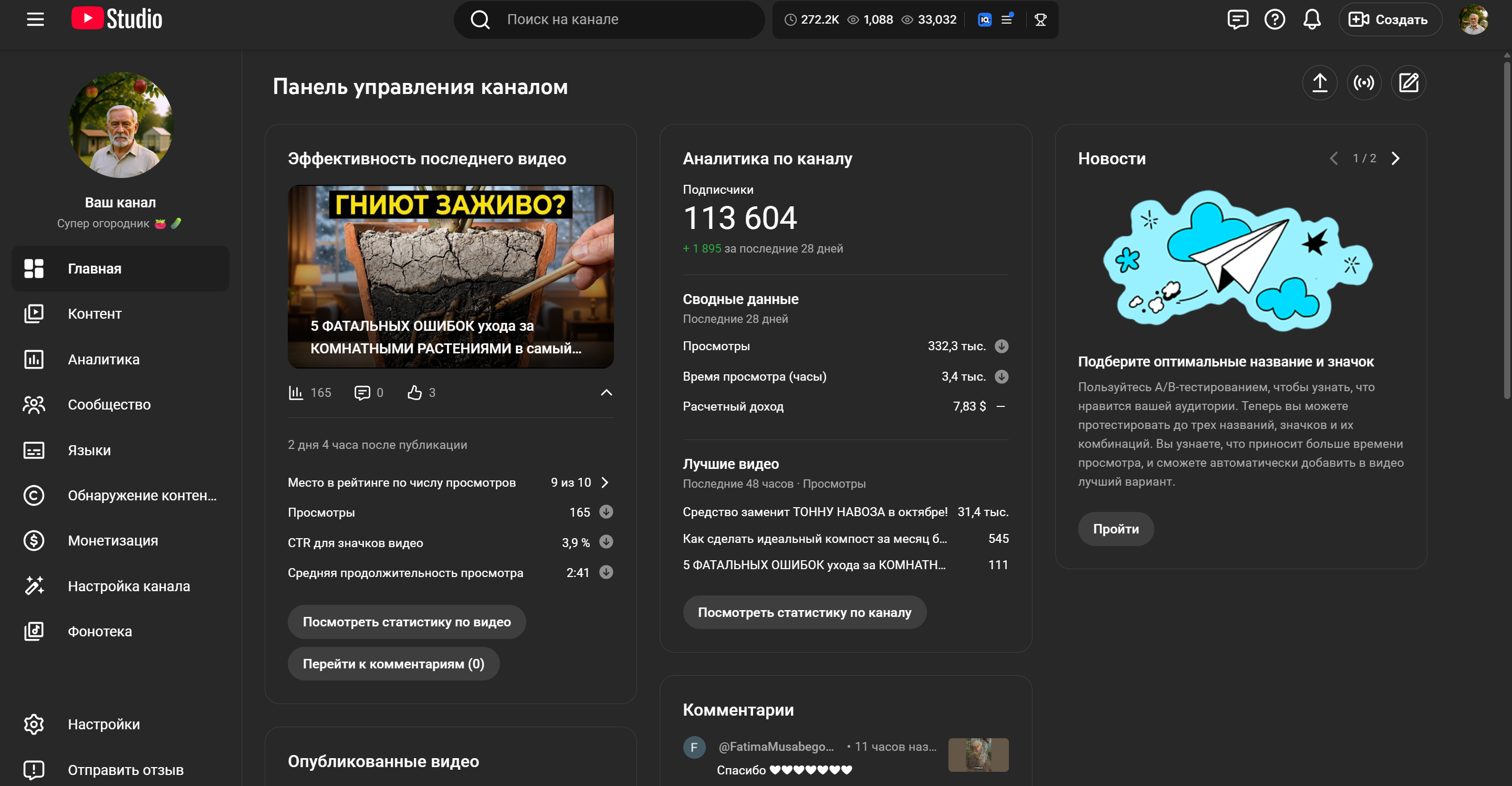 КРУПНЫЙ ютуб канал по дачной тематике, постоянный доход!