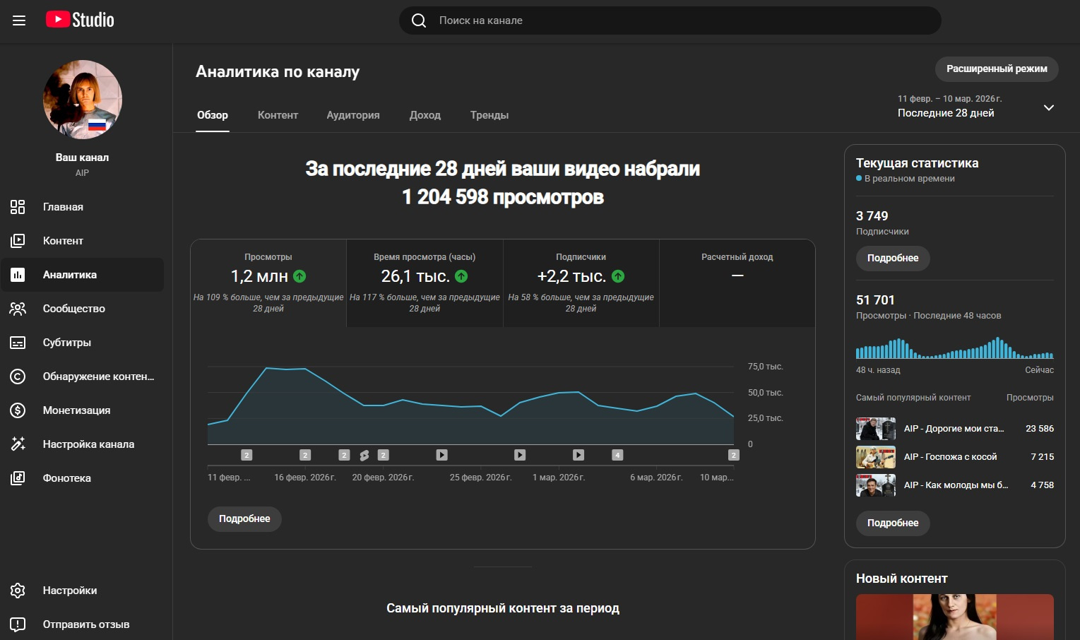 Уникальная ниша! Актёры поют и играют в муз.клипах / (+1000 пописчиков/мес) / Готов к монетизации (4000 часов)