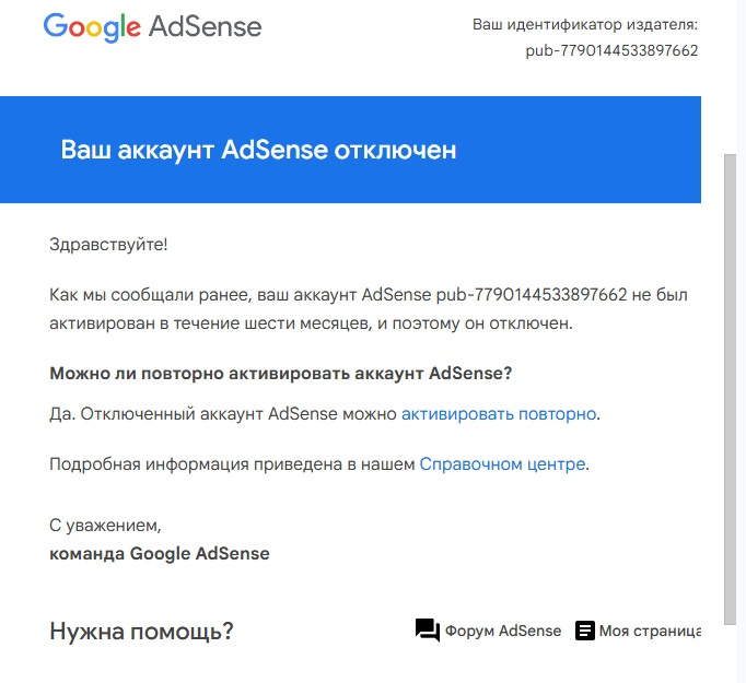 После того, как в России перестал действовать YouTube, и у меня исчезла возможность продолжать регулярно выкладывать видео, на канале была отключена монетизация. Я даже не смогла вывести остаток средств. Но отключенный аккаунт AdSense можно активировать повторно.