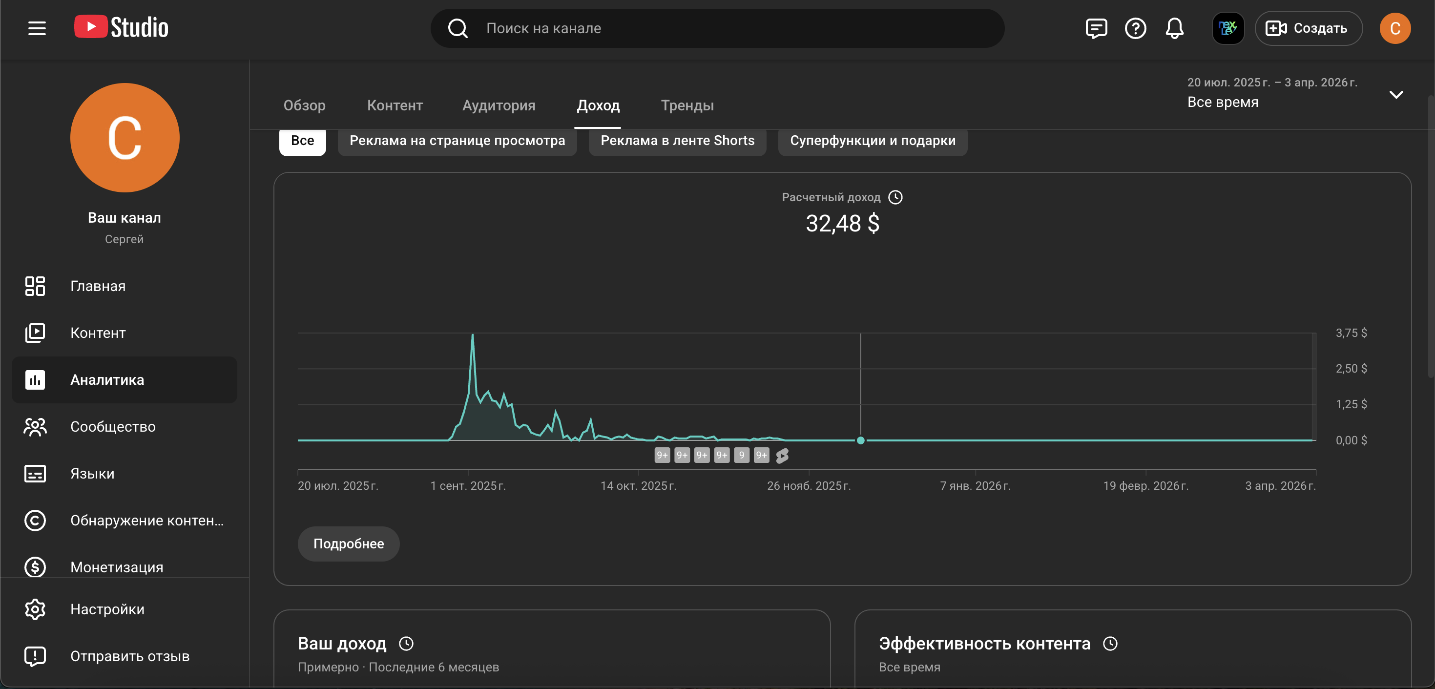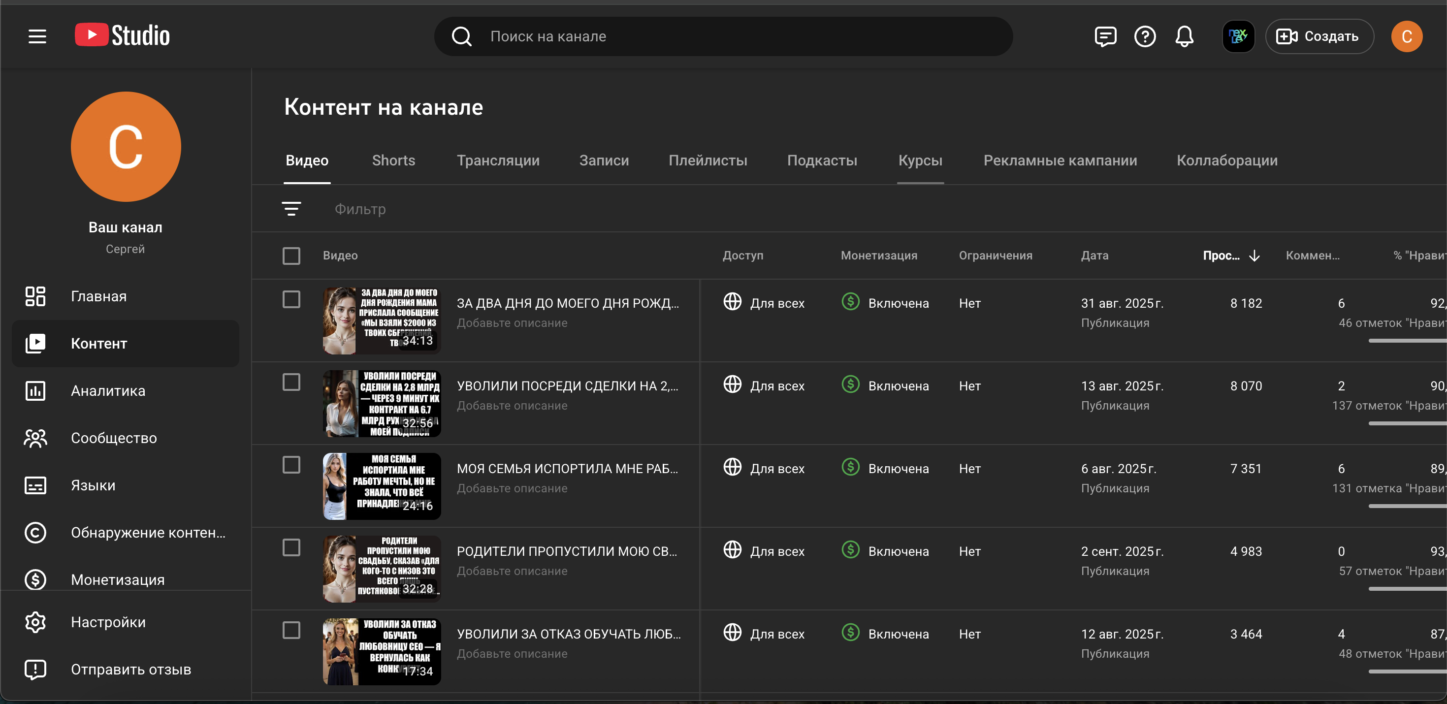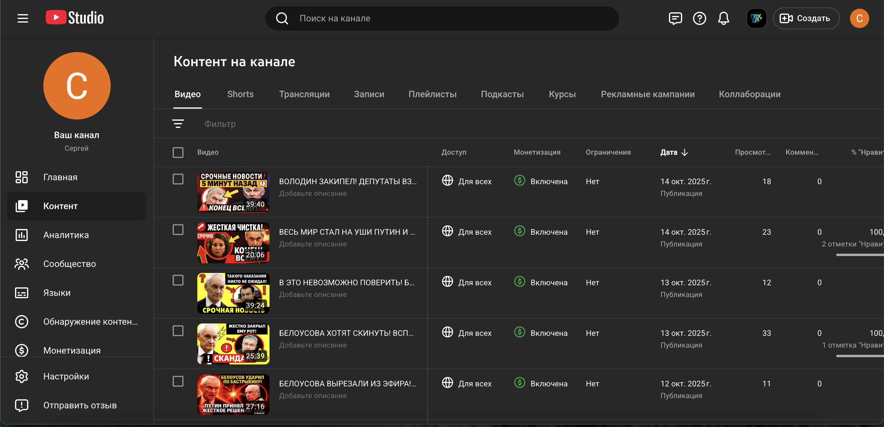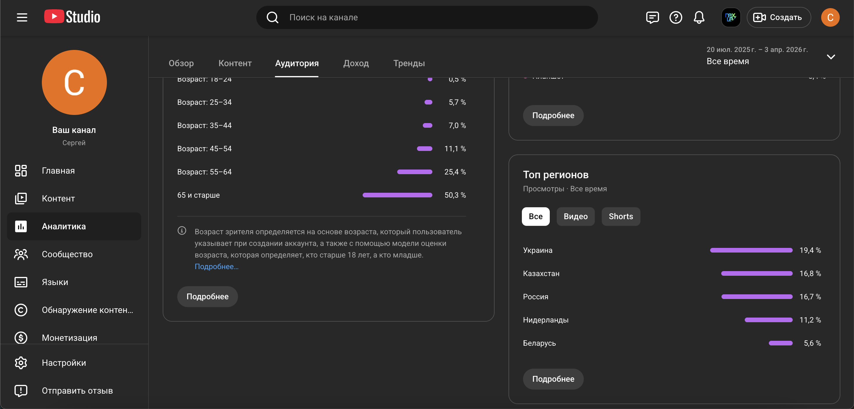 Продам ютуб канал с включенной монетизацией! Рост органический, трафик как и из лонг видео, так и из шортс.