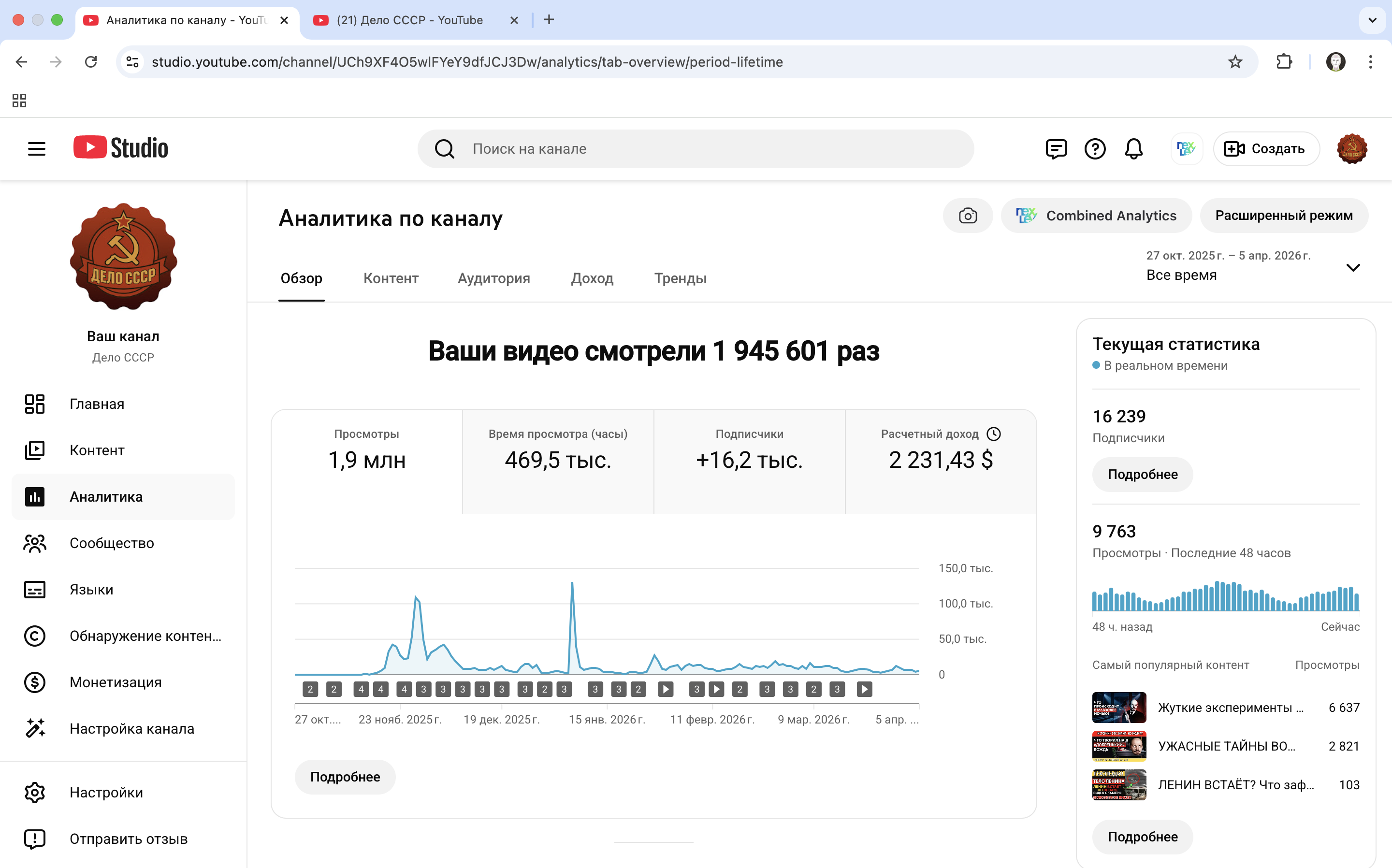 Действующий канал на темы: СССР, политики, конспирологии и предсказаний.