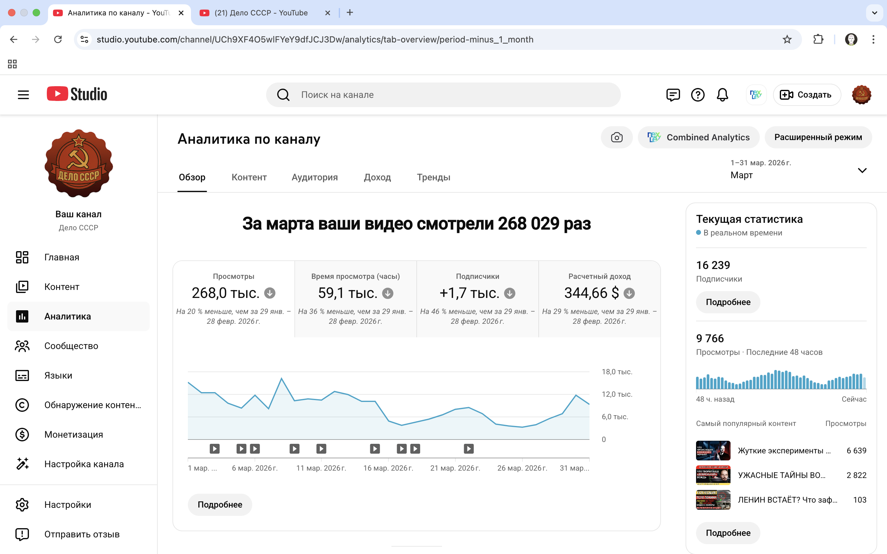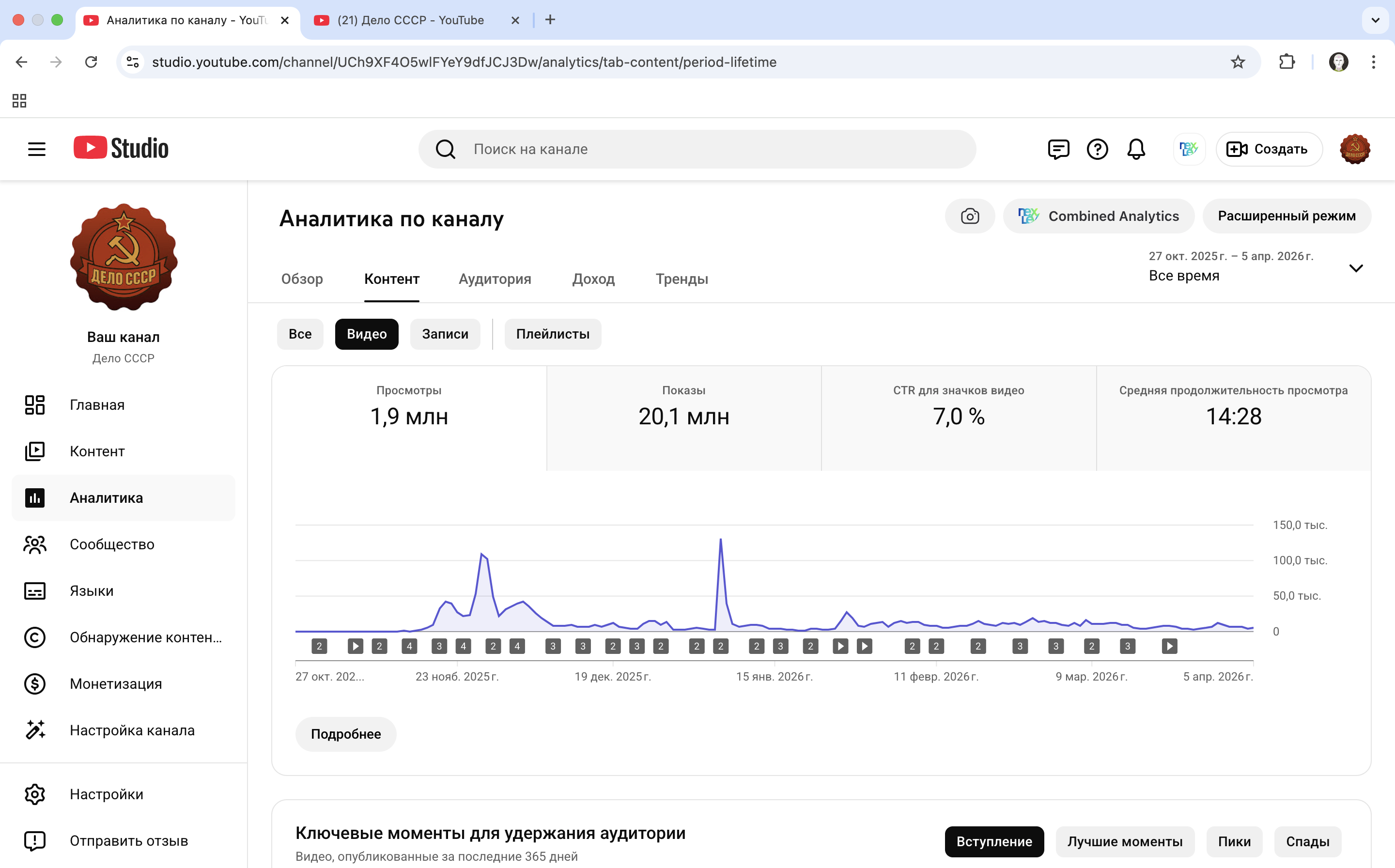 - Есть одно видео на 1 миллион просмотров, которое входит в ТОП 10 видео по запросу "Мавзолей Ленина". И оно будет дальше набирать просмотры и раздавать охваты на новые видео