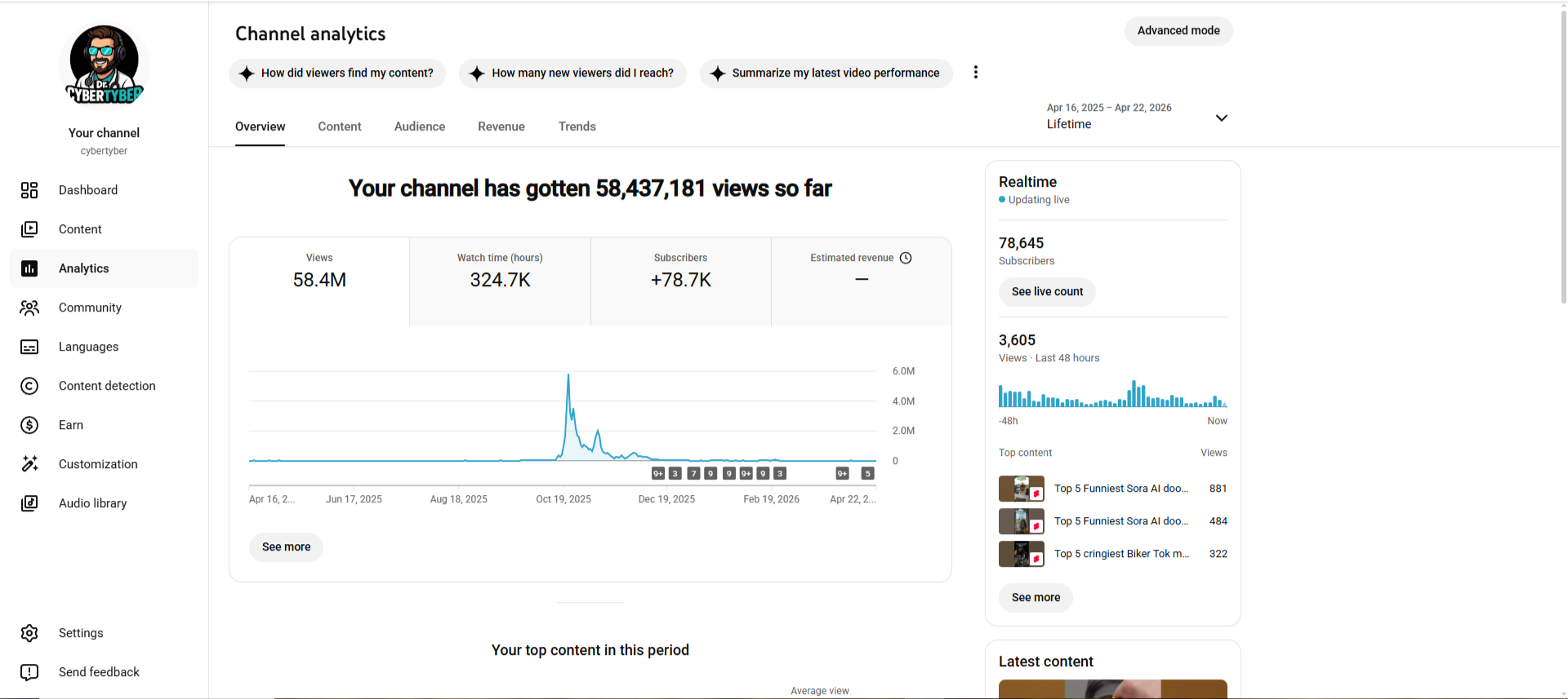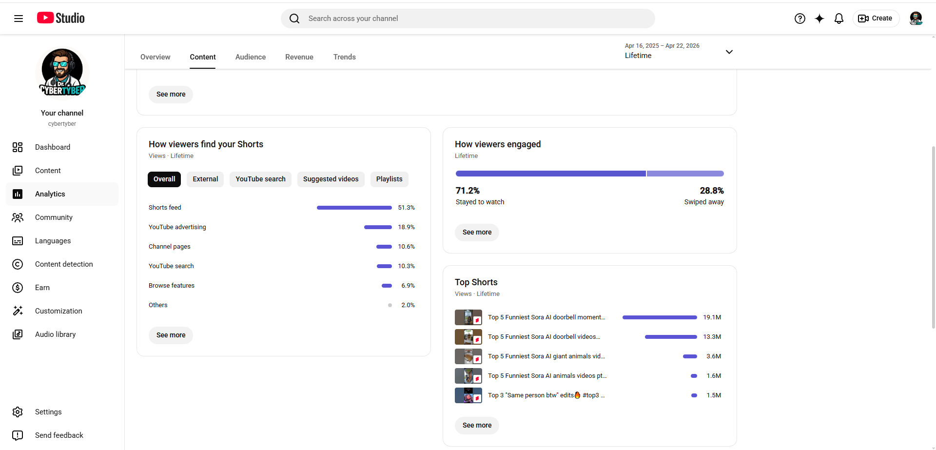 Продажа YouTube-канала "cybertyber" (75 000+ подписчиков / Органика Shorts)