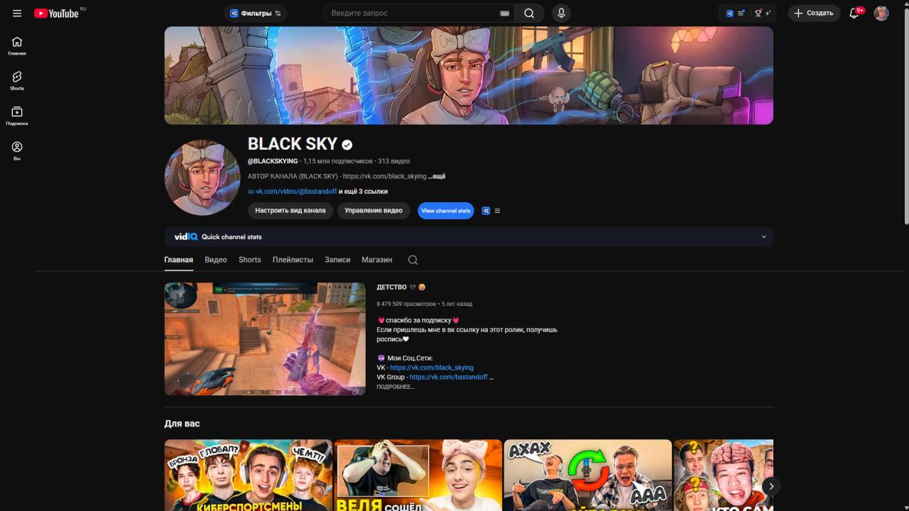 Продаётся крупный YouTube-канал BLACK SKY в игровой тематике.