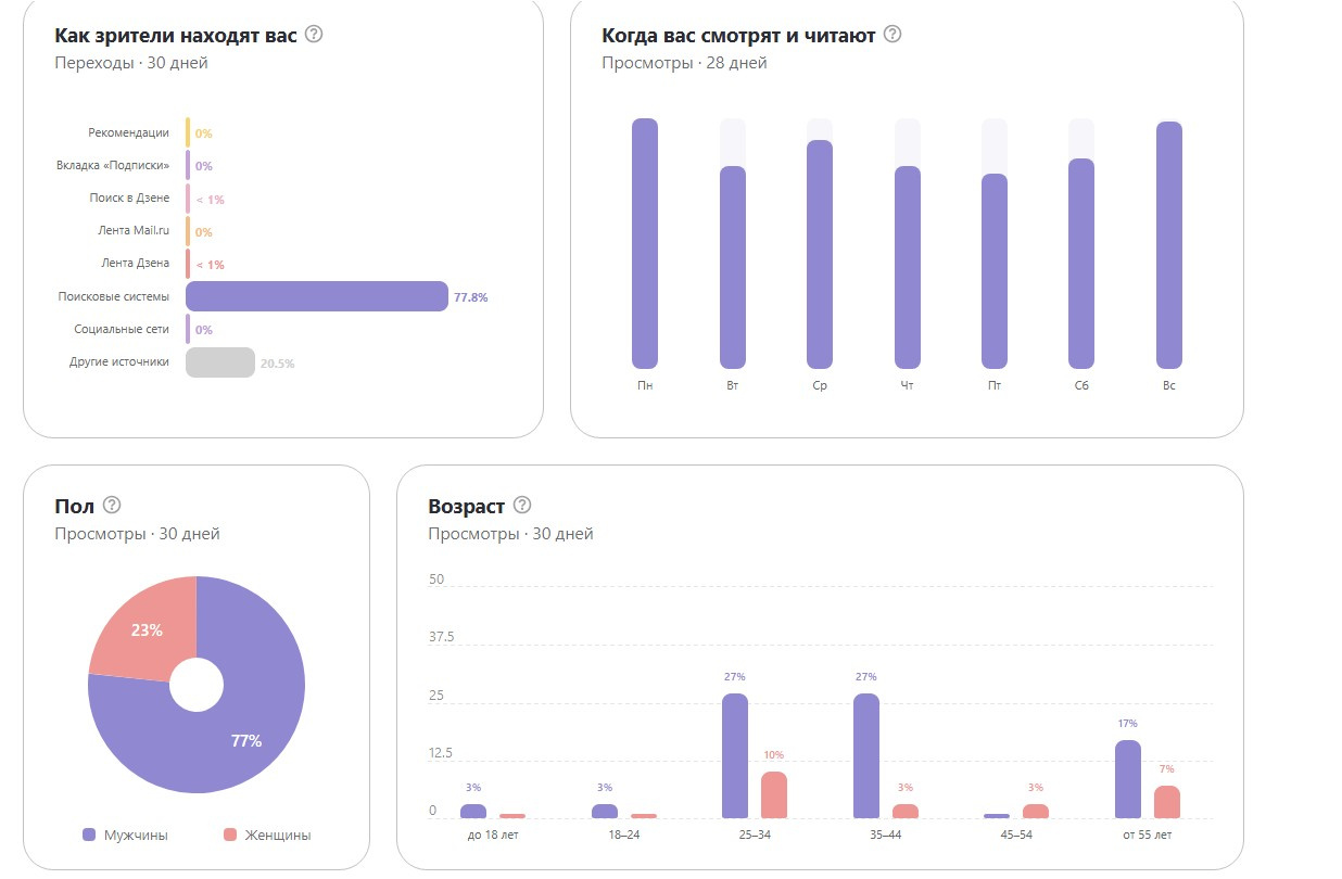 Канал дзен на автомобильную тематику. Круто зашёл в поисковик, по метрике можно посмотреть переходы, есть каждый день, но как набирать подписчиков в Дзен не знаю и не понимаю. Канал можно развивать дальше, те кто разбирается думаю легко наберут нужное количество подписчиков для монетизации, можно использовать и под другие цели, тема авто широкая для монетизации разными способами. Статьи писал сам, естественно есть индексация, статьи залетают в поиск яндекса. Отдам в добрые руки) Давно не постил новых статей, с ноября прошлого года, но переходы стали только активнее с того времени. Сейчас главное быстро подхватить. Главный плюс, что никаких накруток искусственных, всё на естественном трафике