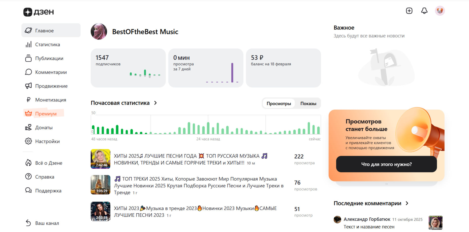 Крутейший и популярный Живой канал с Музыкой и подключённой МОНЕТИЗАЦИЕЙ! Актив Каждый день (лайки, комментарии и т.д.), идёт доход, канал (если его раскрутить) с очень высокой доходностью.