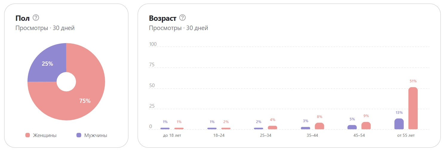 Активная и лояльная аудитория. Аудитория женская 75%, мужской 25%.