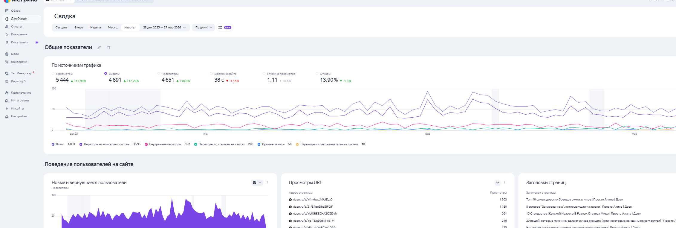 - 27% — внутренние рекомендации Дзена