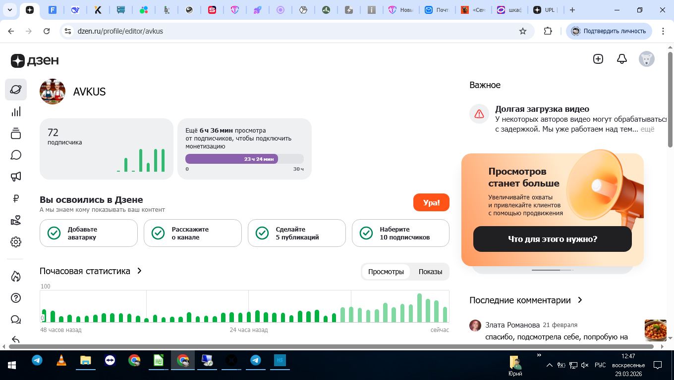 Продаю канал доведенный лично мной до монетизации. Анкета не заполнена. Можно все(тему,название канала, url-канала, телефон) можно изменить кроме аккаунты(эл.почта) Предупреждений нет.