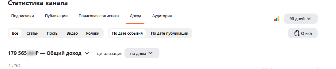 Примечание: в статистике в графе Просмотры указаны Показы, на Дзен нет метрики просмотров как таковой.