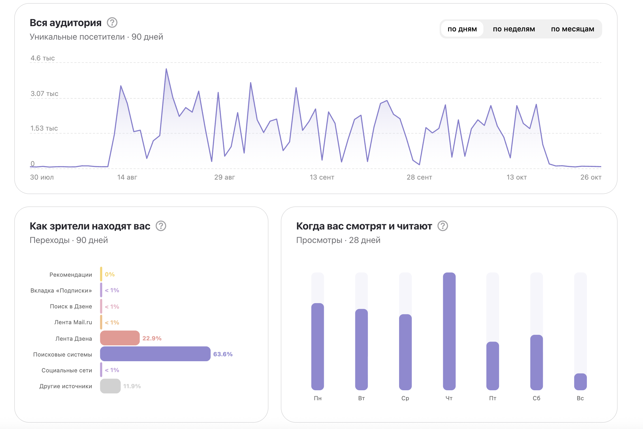 Активный канал, показывает положительную динамику роста, есть много статей в индексе откуда идет трафик.