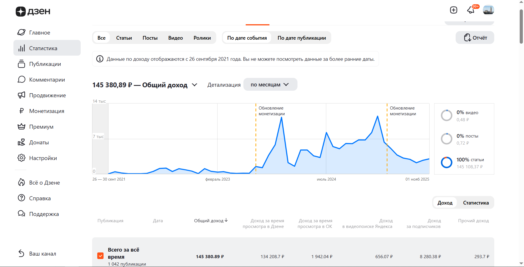 Доход за всё время - более 250 000 руб.